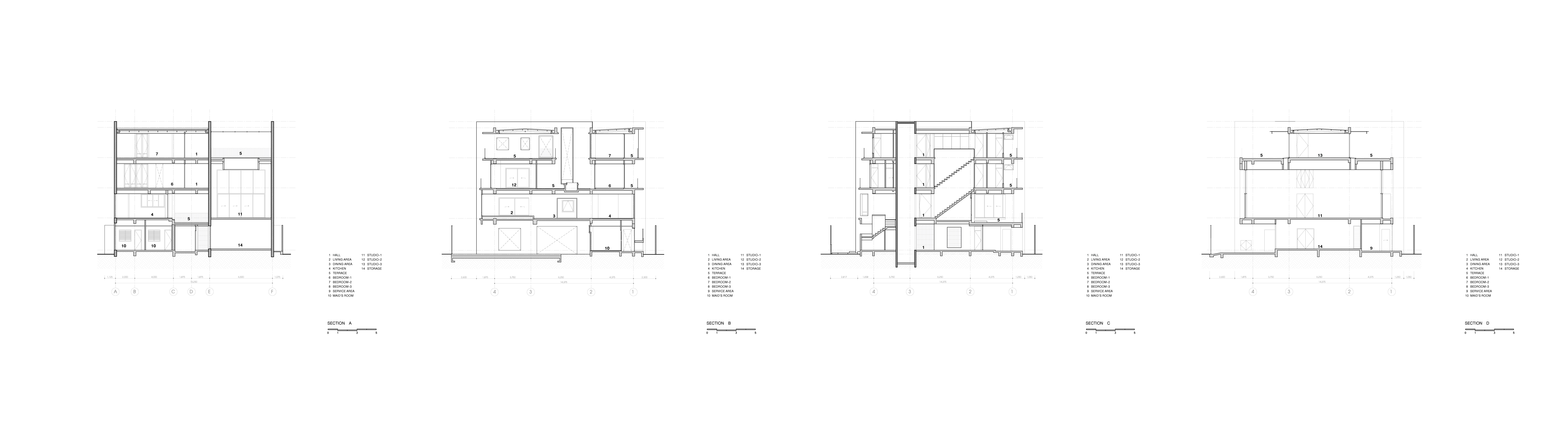 The project is a house and studio of Pinaree Sanpitak, one of the most renowned Thai artists of our time. Situated in an old residential neighbourhood of Bangkok, where most of the buildings still remains in a small scale among thick layers of trees, the house attempts to blend in even with a bigger volume than that of its surrounding. The spatial organization is designed to receive several gathering scenarios of 24 hours a day working-as-living life of the artists. The possibility to connect to the outdoor space with tree of every single room is also the key feature of the house. The windows are the main device to frame and distance the outside world from the house / studio.